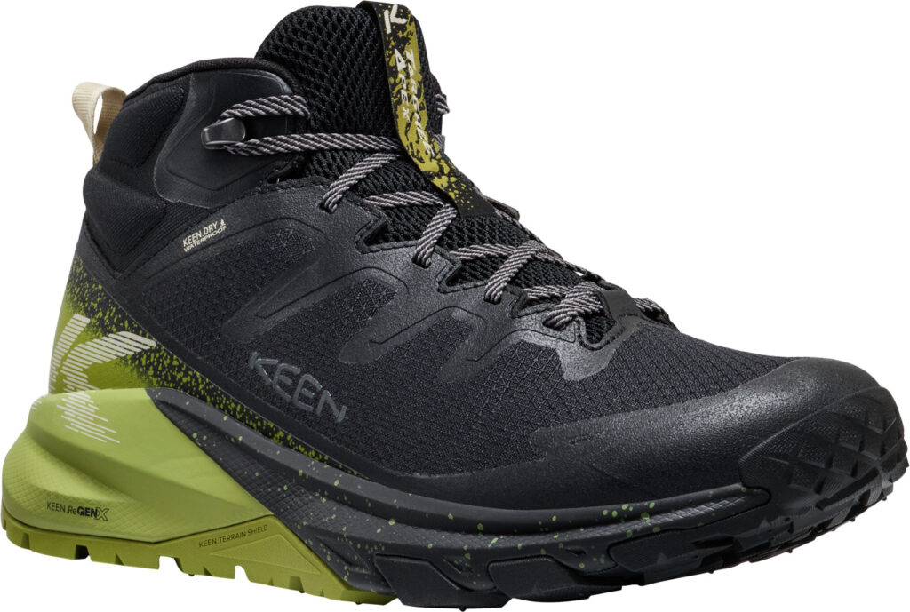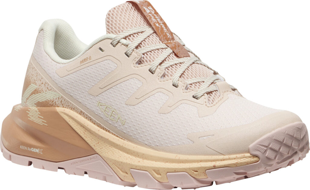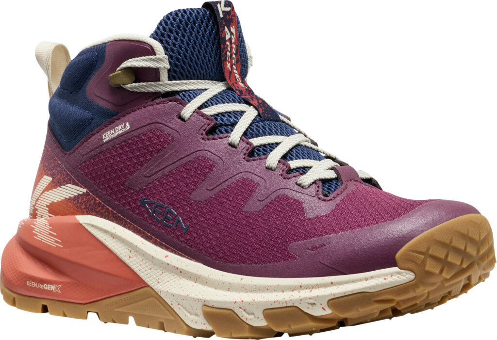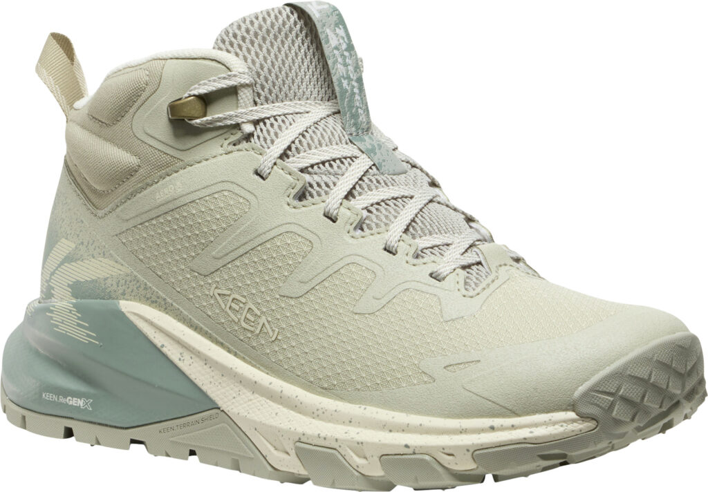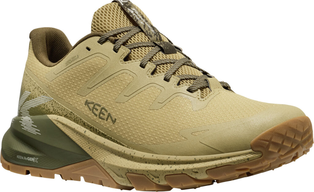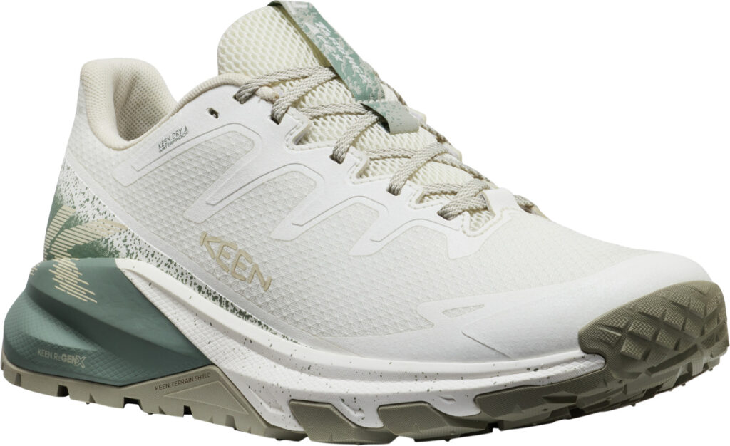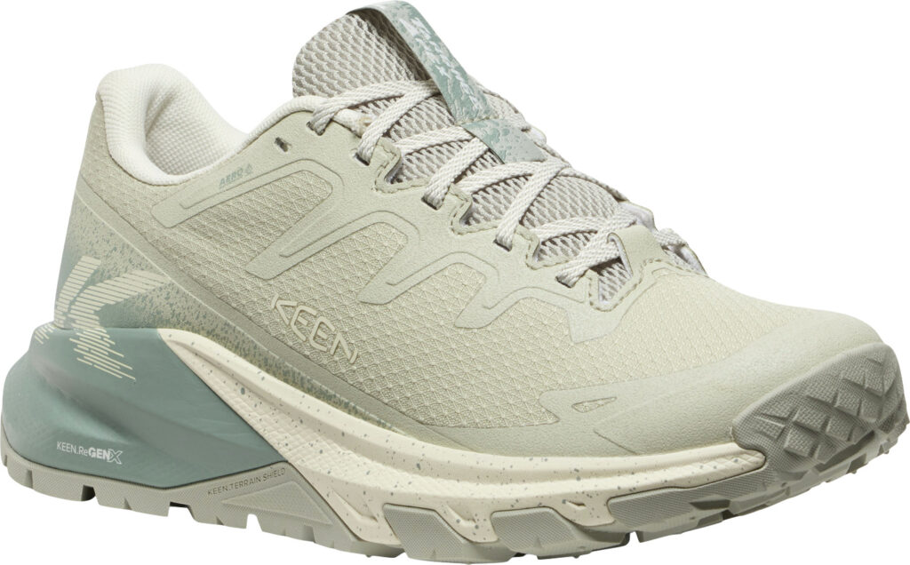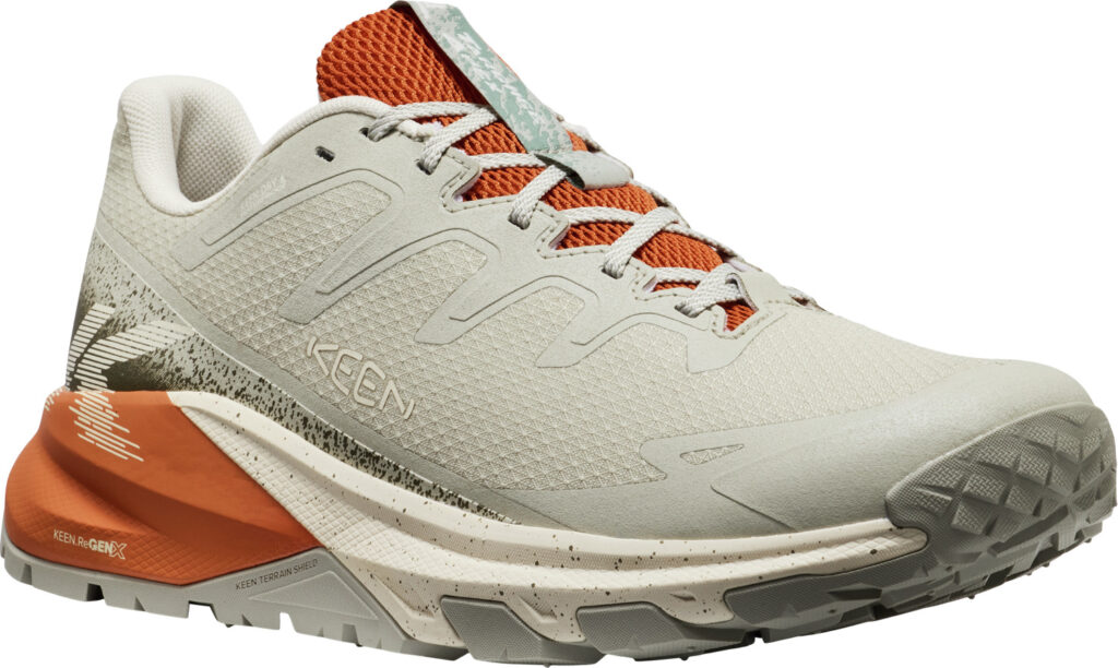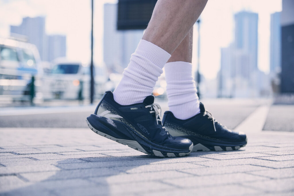 最大の特徴は、新開発のミッドソールフォーム「KEEN.ReGENX」を搭載していること。軽量でありながら高い反発力を持ち、着地時の衝撃を次の一歩への推進力に変えることで、長時間歩いても疲れにくい「反応性の高いライド感」を実現しました 。