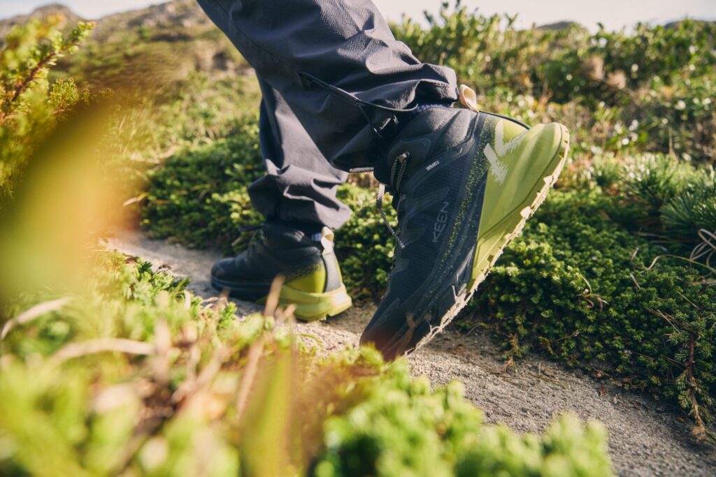 また、アッパーには柔軟なテクニカルテキスタイルを採用。足の動きにしなやかにフィットしながらも、岩や木の根で摩耗しやすい部分はしっかりと補強されており、軽量化とタフさを両立しています 。防水透湿素材「KEEN.DRY」も搭載されているため、天候の変化にも安心です 。