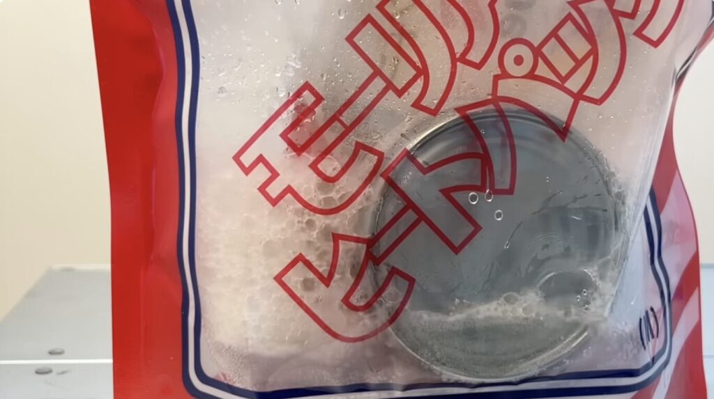 80mlの水を袋に注いですぐに発熱が始まるそうなので、袋のチャックを閉めます。