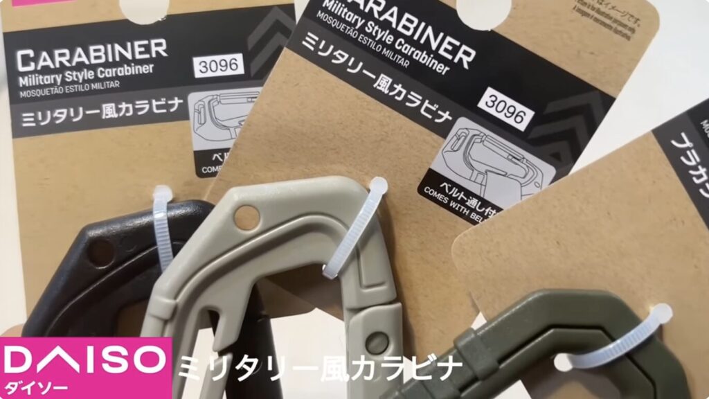 ダイソー【3】ミリタリー風カラビナ/プラカラビナ 各110円(税込)
