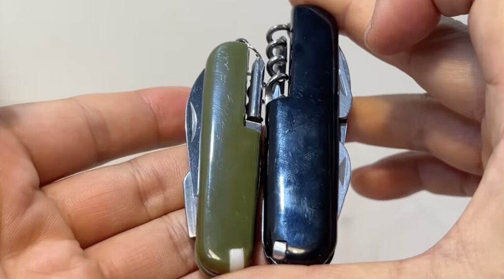 以前の100円ショップのマルチツールナイフはほとんど切れなかったので、ビクトリノックスやレザーマンのナイフとは完全に似て非なるものですね。