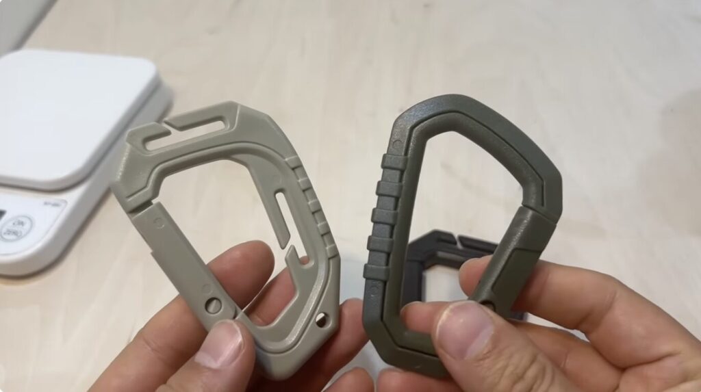 ベルト通しが付いているものがミリタリー風カラビナ(左)です。