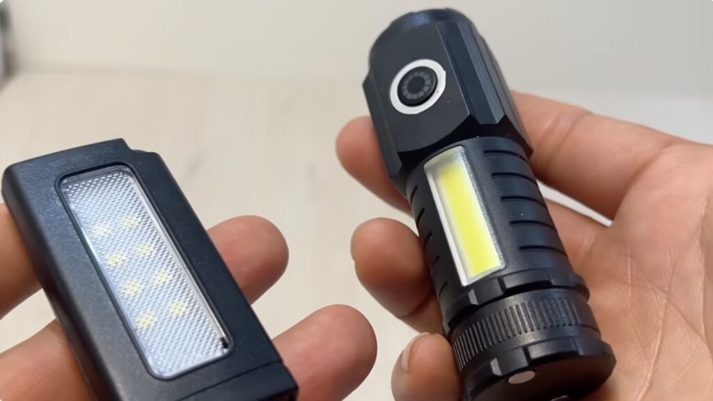 樹脂デュアルLEDライトは、同じくライトとランタンの2WAY仕様ですが、先ほどのコンパクトライトよりも明るさと持続時間が増えていますね。