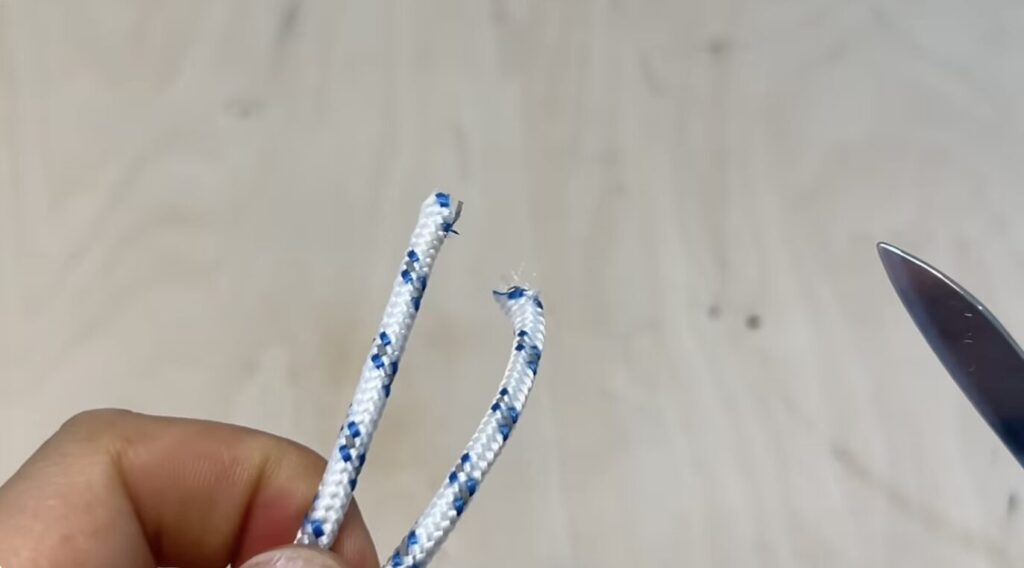キャンプ用のロープは中に芯が入っていたりするので、従来品の100均ナイフでは力を込めても全く歯が立ちませんが、セリアの新型ナイフではパラコードも切ることができました。