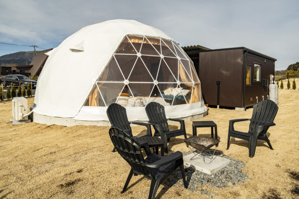 丸みのあるフォルムが印象的なドームテントタイプは、グランピングらしい雰囲気を思い切り楽しみたい方にぴったり。