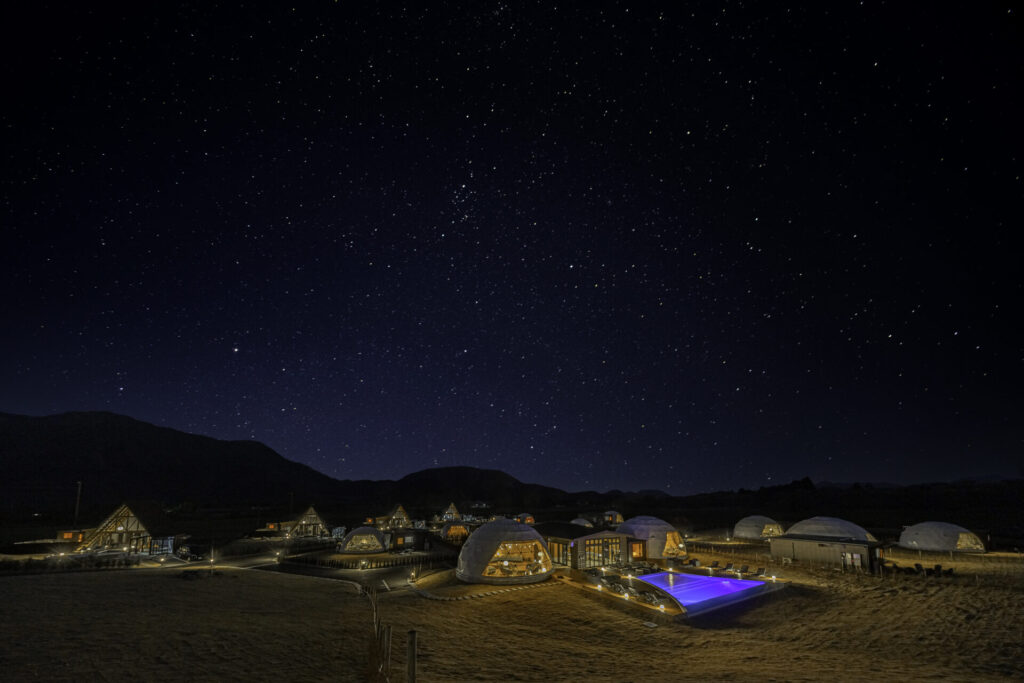 すべてのヴィラやドームテントなどから富士山を望める配置となっていて、景色を存分に楽しめるのが特徴。早朝の澄んだ空気の中に浮かぶ山影や、夕暮れに染まるシルエット、星空と富士山のコントラストなど、時間ごとに異なる表情が眺めることができます。