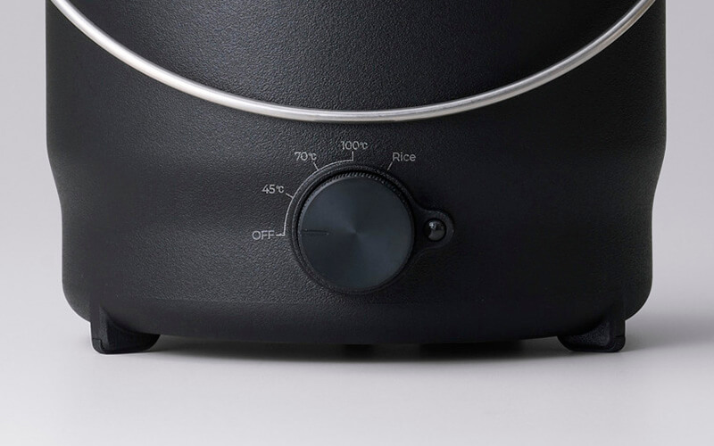 ダイヤルを回すだけで「45℃・70℃・100℃・炊飯」の4つのモードを簡単に切り替えられ、保温&調理できるのが魅力。