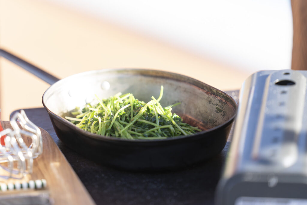 小木さんが挑戦するのは、「玄人好みの白いあんかけチャーハン」と「魔法の粉&豆苗で作る青菜炒め」。