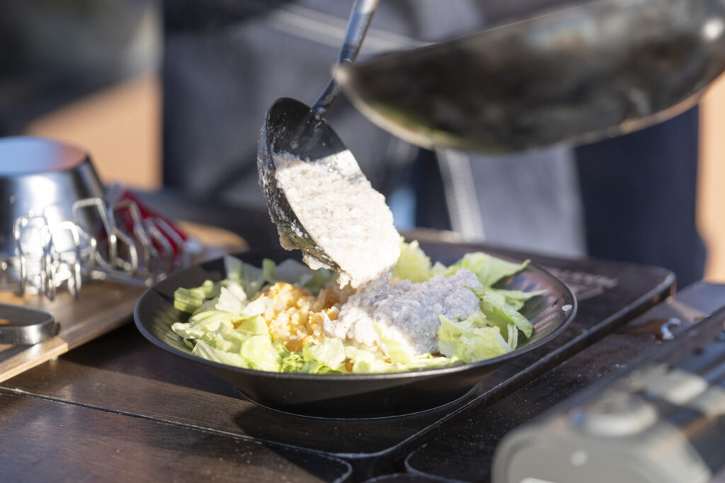 なめろうを仕上げた後は、いよいよメインのアジフライ。ここで大野先生が伝授したのは、キャンプ飯がワンランクアップする二度揚げの技です。