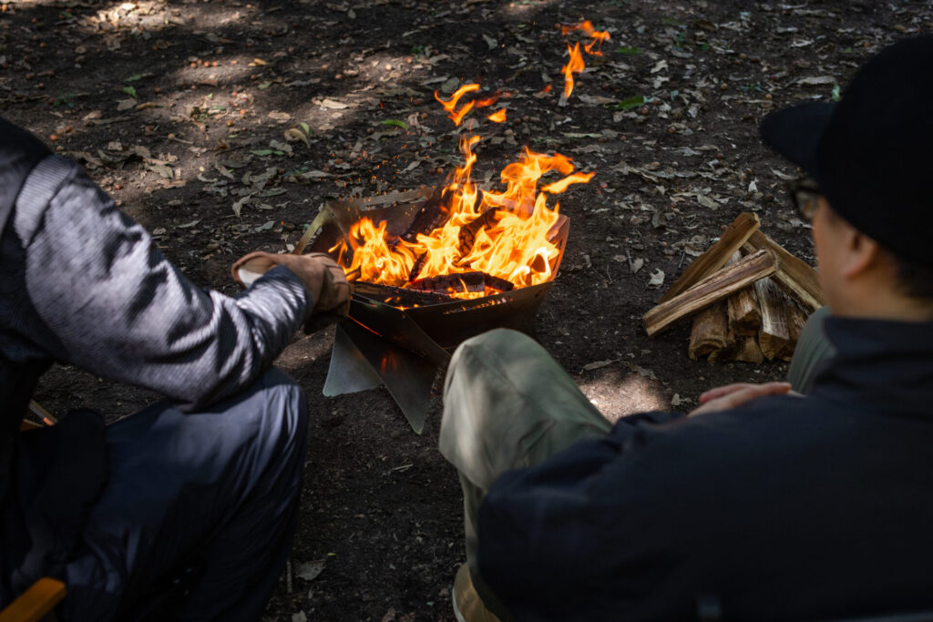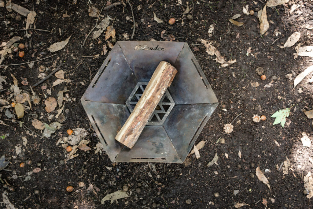 市販の薪がそのままスッポリ収まる『焚き火台 六花 BIG』の豪快なサイズ感