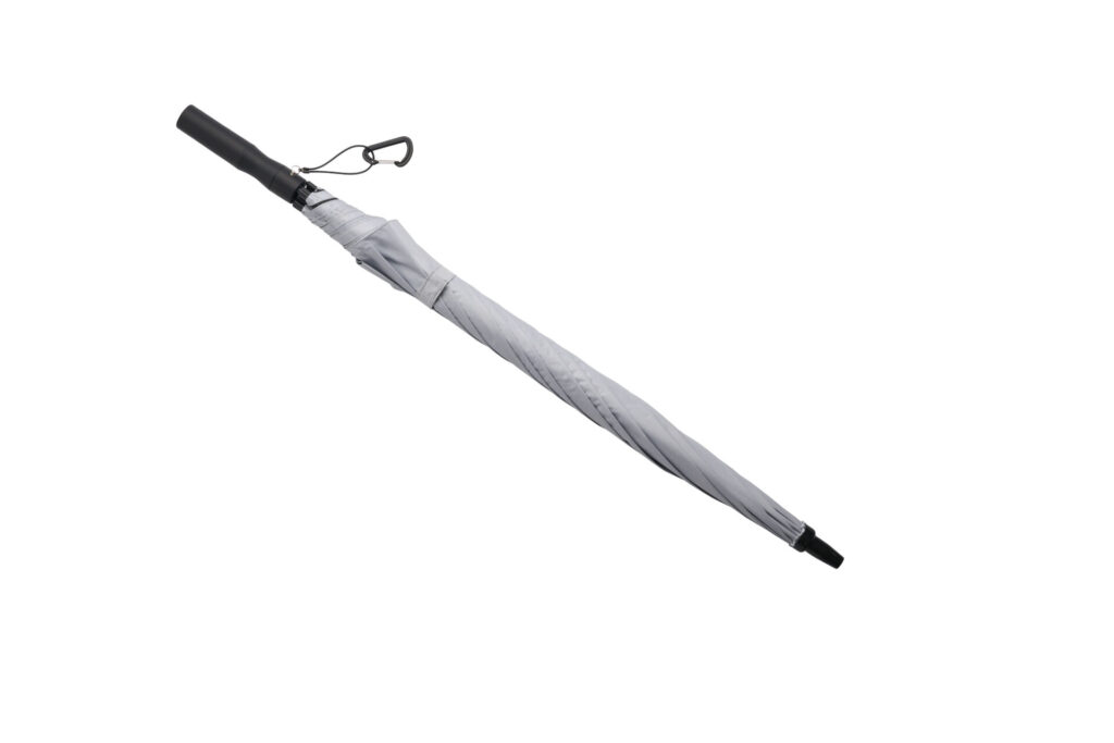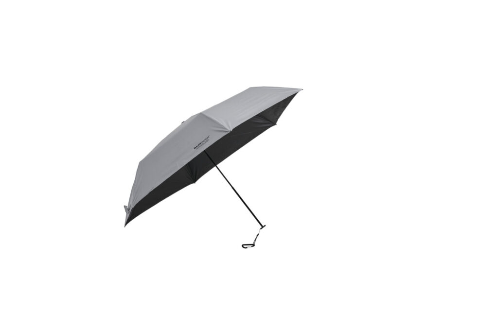 ダークルームテクノロジーを採用した晴雨兼用の大型パラソルです。使用時は約115×115×86(h)cmという大きなサイズのため、スポーツ中の休憩や観戦の際にも広い影をしっかりと確保することができます。グレーとブラックを基調としたミニマルなデザインに仕上げられており、スポーツシーンだけでなくデイリーユースにも◎!
