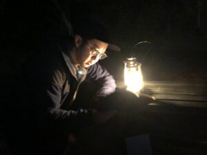 1人ひとつのオイルランタンが渡されました。撮影場所はキャンプ場内なら自由!誰が一番映える写真をとれるのでしょうか!