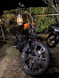 バイクのハンドル部分に吊り下げるのおしゃれですねー。