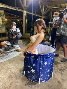 おもてなしキャンプも終盤 ついに自作の温泉が完成!お湯加減はいかが?