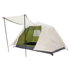 happycamper.jpコメリ『クイックアップ キャノピー付ソロテント』は、名前のとおり、キャノピーが付いているソロテントです。