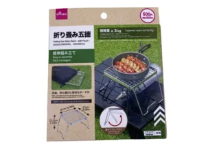 メスティン炊飯に欠かせないポケットストーブと固形燃料もダイソーで揃います。ポケットストーブは税込み330円、固形燃料は25g×3個入りで税込み110円です。